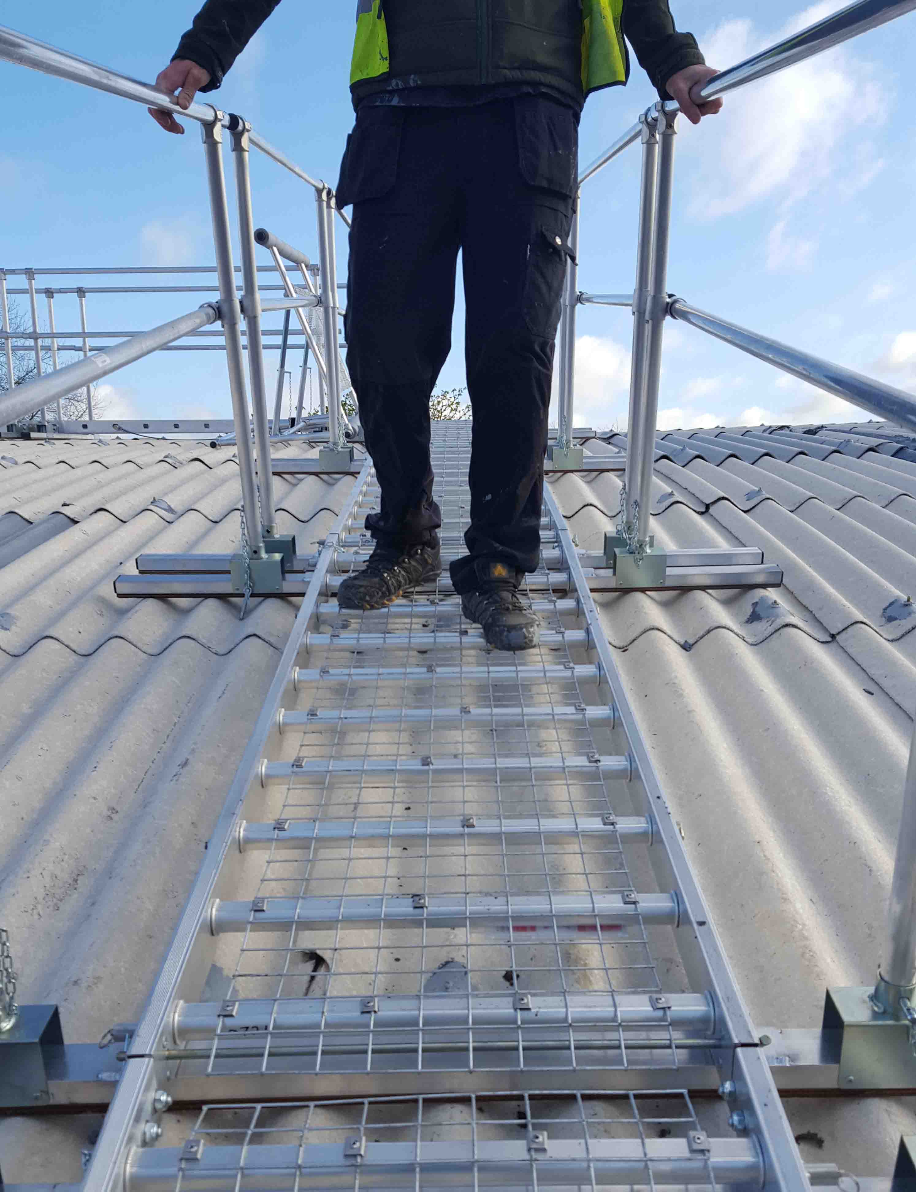 Board-Walk 開放格柵安全步道打造從屋簷到屋脊的通道,將荷載分散到支撐板條上。Board-Walk 便於攜帶,格柵安全步道十分醒目易辨,且能經受住各種天氣條件的考驗。 其組件長 4 米,便於連接,還可選配扶手。 Board-Walk 還自帶一根全長度的工作定位繩。