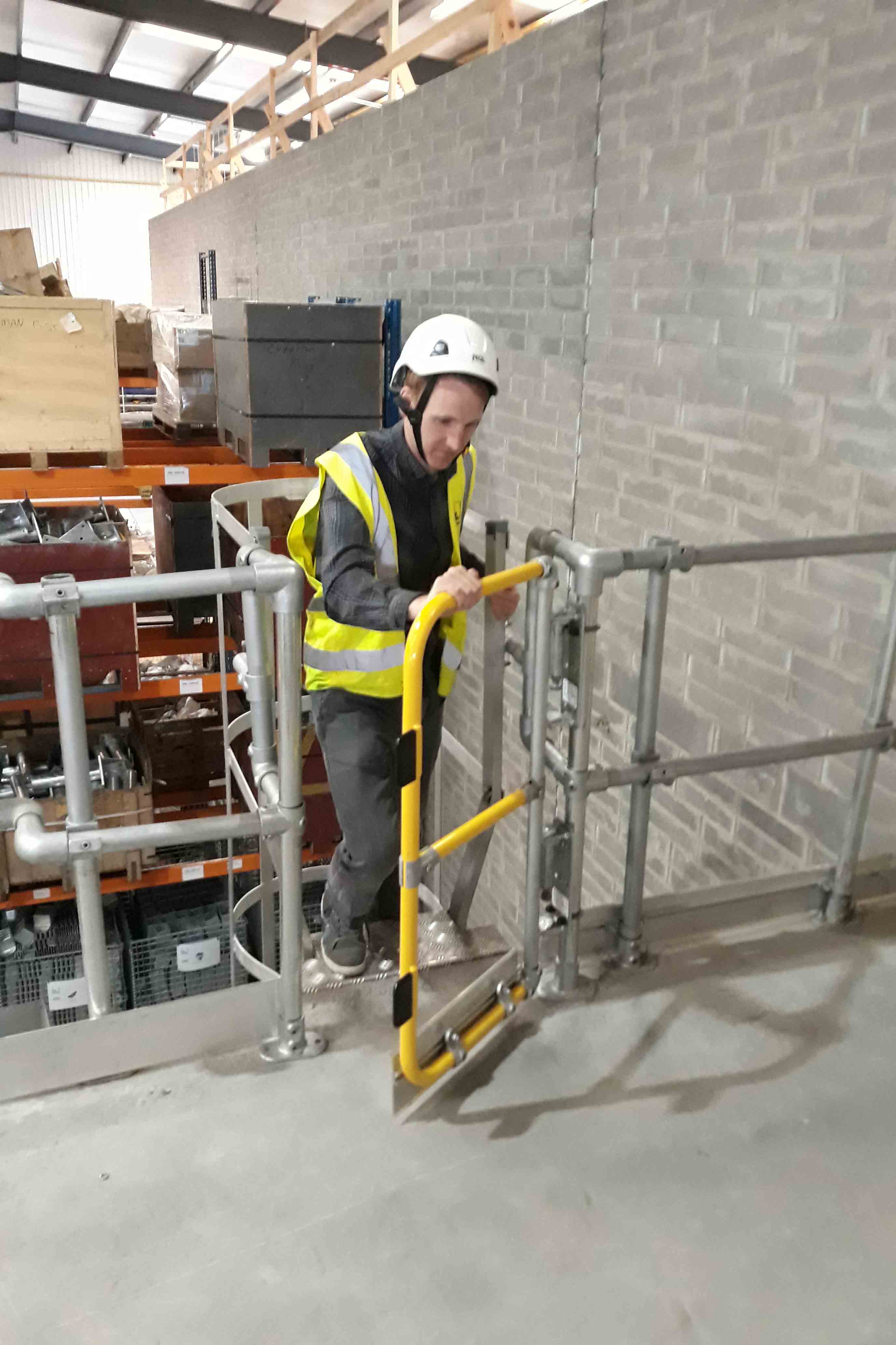 全高門適用於爬梯口。門高 1.1 米,配有鋁製踢腳板,可為不同工況下的工作人員提供額外保護。全高門可靈活調節尺寸,適用於 1 米寬的敞口。